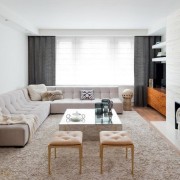 Гостиная в стиле «потертой роскоши» – это всегда просторное помещение со светлой отделкой, чаще всего с белоснежными стенами, деревянным напольным покрытием и кипенно-белым потолком, который венчает роскошная люстра. Зона отдыха с мягкой мебелью в светлых тонах, небольшой журнальный столик из антикварного магазина или блошиного рынка, торшеры настольные или напольные с текстильными абажурами – такое наполнение общей комнаты является наиболее частым вариантом оформления.