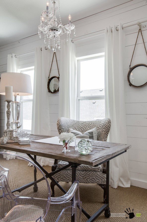 Удивительное сочетание роскошной люстры и потертого шкафа, богатого текстиля штор и старых кресел с элементами старины, которые невозможно подделать, которые появляются только после длительного использования, все это шебби шик с его романтичностью, любовью к винтажу, к элементам богемной старины и роскошному декору.