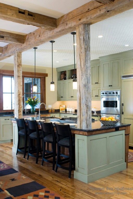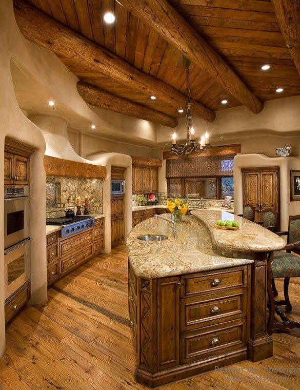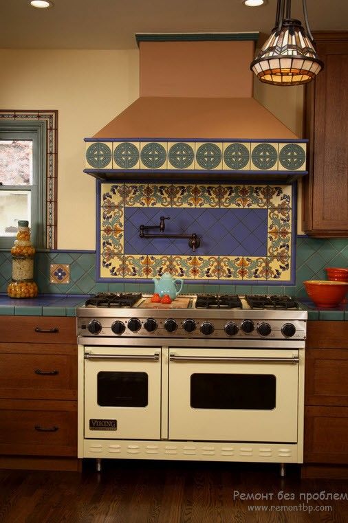 Еще один приближенный к кантри стиль – прованс, ассоциирующийся с теплом южного солнца. Кухни этого направления не терпят искусственности. Здесь предпочтительны натуральные материалы с их явно выраженной структурой. Для подчеркивания стиля используются древесина, расписная плитка из керамики, глазурованный кирпич или мозаика. Фактура материалов является наиважнейшей составляющей стиля прованс. Например, часть кухонной стены можно облицевать природным камнем или пробковым деревом, а оконный проем оформить занавесками изо льна.