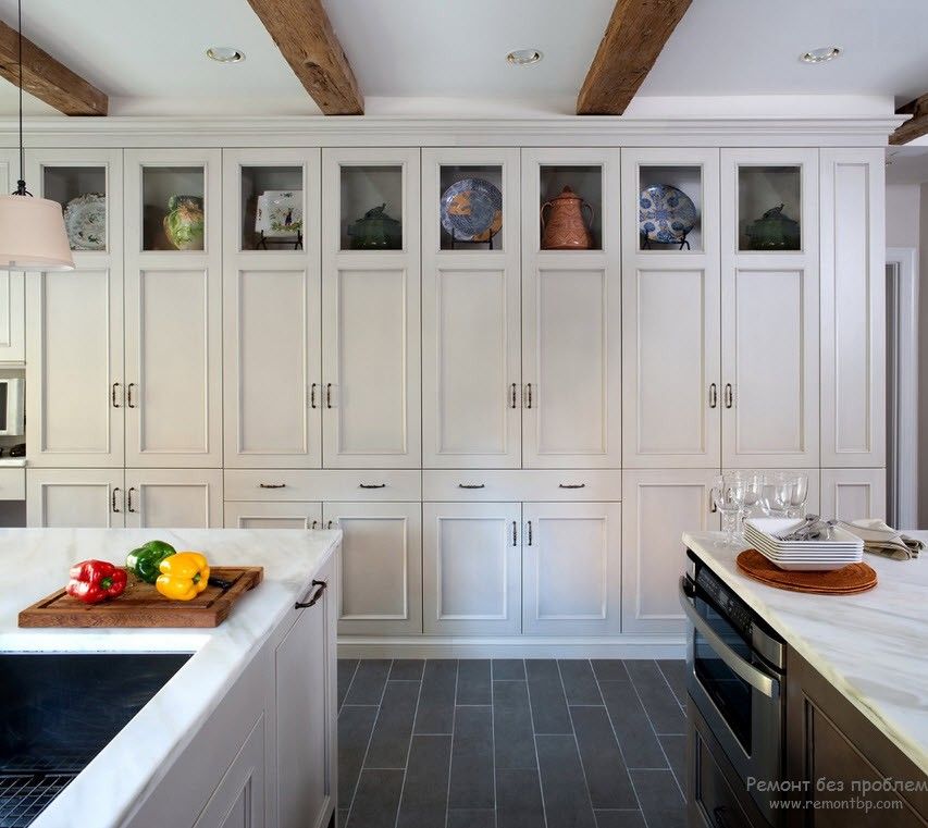 Такой вариант идеально подходит для людей, которые не терпят проведения частых ремонтов и не выносят смены обстановки. Достаточно в дальнейшем обновлять отдельные элементы интерьера, например, поменять на окнах занавески и приобрести новые цветочные горшки. Можно на кухонных фасадах сменить деревянные вставки на ротанг или витражное стекло, и кухня заиграет по-новому.