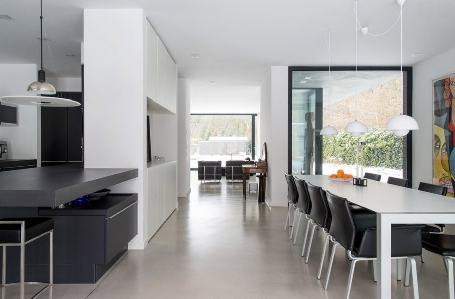 Обычно столовая совмещается с кухней, поскольку это очень удобно в вопросах приготовления и подачи пищи на обеденный стол.