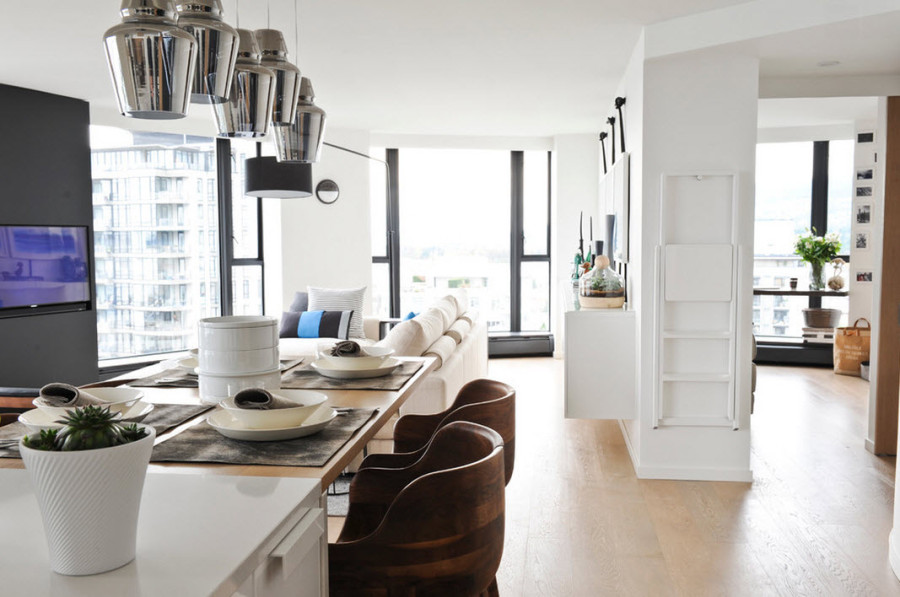 Вариантов выделения в отдельное пространство столовой существует множество. Это можно выполнить следующими способами:
