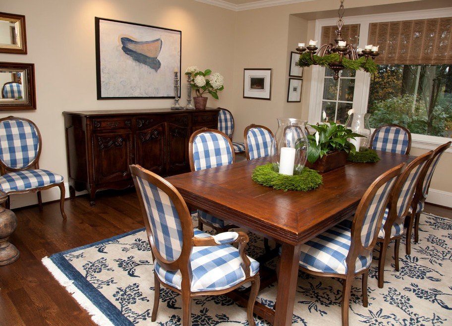 Отлично смотрится обивка стульев, сочетающаяся по цвету, фактуре, дизайну с мягкой мебелью, текстилем и стилем интерьера. Важен и непременно качественный и износостойкий материал обивки: кожа, кожзам, жаккард, гобелен, бархат, плюш, велюр, флок, микрофибра, шелк, атлас, рогожка. Количество стульев для гостиной будет зависеть от площади комнаты, формы и размеров стола.