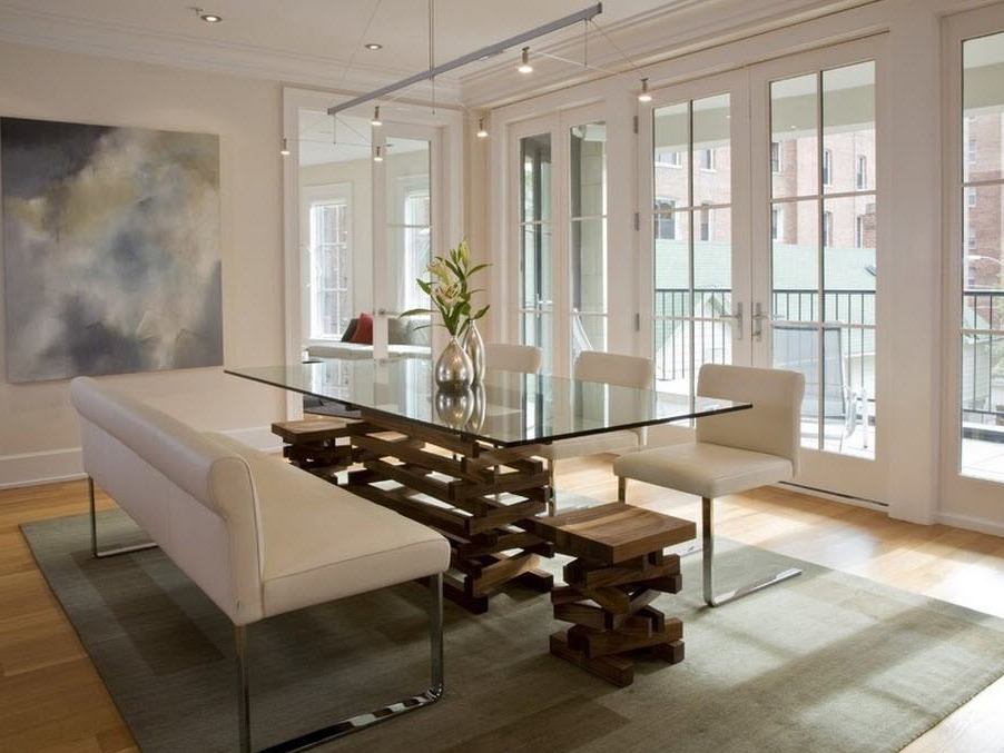 Обеденный стол с комплектом красивых и удобных стульев – это сердце любой гостиной. Как и стулья, столы бывают самые разнообразные: стационарные, трансформеры и передвижные. Какой выберете Вы, будет зависеть от размеров гостиной и Ваших личных предпочтений. Возможен эргономичный вариант для гостиной в виде журнального столика в тандеме с небольшими стульями, пуфиками или трендовыми креслами-мешками. Обеденный столы бывают разной формы: круглые, квадратные, овальные, прямоугольные.
