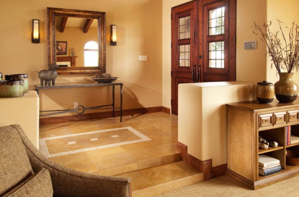 Проходная зона предполагает наличие всей остальной мебели и должна иметь более мягкое освещение. Зона, отведённая для перехода в другие комнаты, нуждается в ярком освещении, которое в свою очередь не должно слишком контрастировать с двумя предыдущими областями и соответствовать ух уровню освещения.
