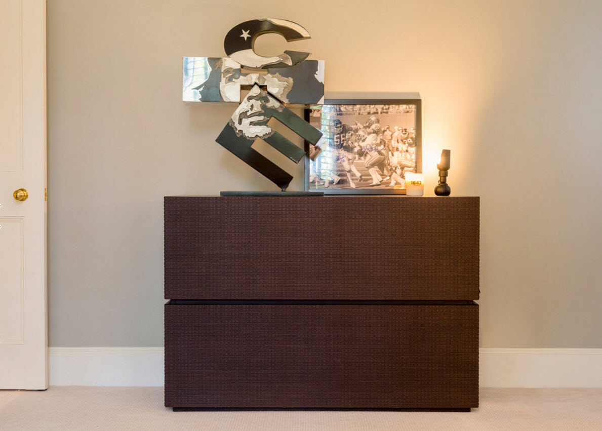 Комод простой и лаконичной формы с абсолютно гладким фасадом дополнен оригинальным тематическим декором. В результате коридор укомплектован композицией, которая не только исправно выполняет свои функциональные обязанности, но и украшает пространство.