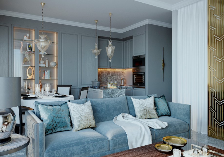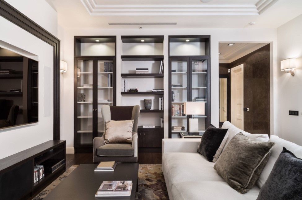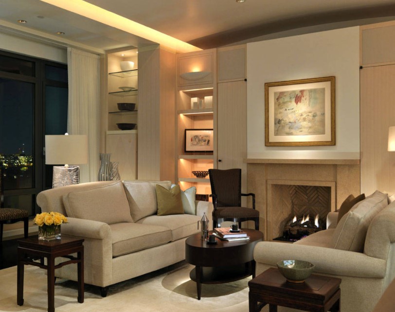 При оснащении гостиной и мебели в ней, можно реализовать самые смелые и оригинальные решения: осветить цветной светодиодной лентой стеклянные стеллажи для посуды или книг, сделать монохромную подсветку мягкой мебели или потолка, и, разумеется, осветить внутренние части шкафов и закрытых полок. В большинстве случаев подсветка шкафов и других элементов интерьера в гостиной является декоративной и очень украшает комнату.