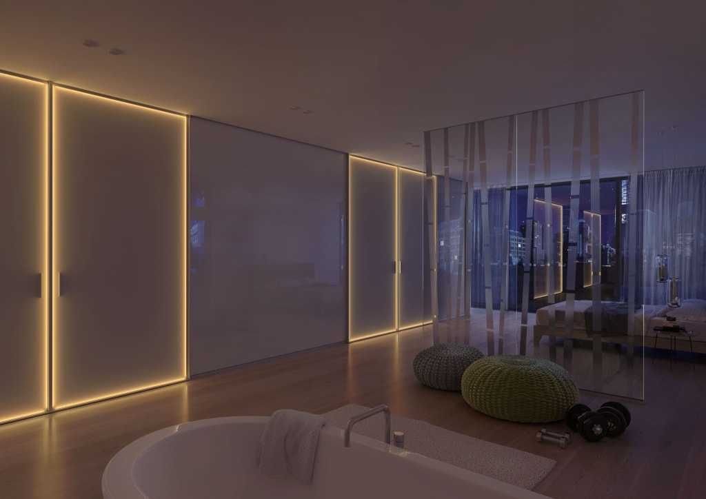 Особенно актуален вариант подсветки шкафов-купе и гардеробных комнат.