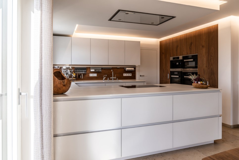 Наиболее подходящими для светодиодной подсветки на кухне являются несколько проверенных мест. Одно из самых распространенных – это зона под шкафами над рабочей поверхностью кухни. В этом случае источники света крепятся в центре шкафов, обеспечивая равномерную и эффективную подсветку в процессе приготовления пищи.
