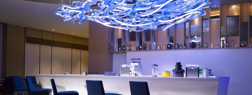 - Встроенные светодиоды – броские и изысканные светильники с максимальной лаконичностью. Они предоставляют большой спектр цветов и имеют разнообразные формы.