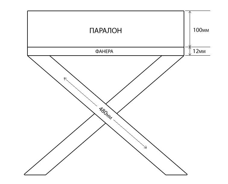 Прежде, чем приступать к работе, рекомендуем на листе бумаги начертить схему будущего табурета. Также можно воспользоваться представленным на фото чертежом.