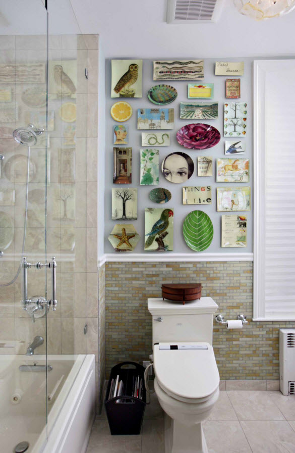 Декоративные тарелки в ванной комнате? Почему бы и нет!