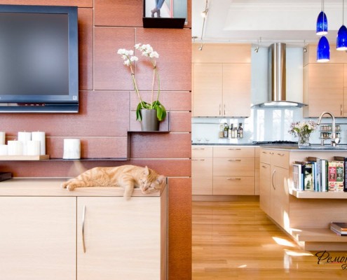 Удобным вариантом будет использование гостиной в качестве места для крепления монитора. Это возможно в случае общей стены между двумя комнатами или когда стена гостиной находится в поле зрения того, кто находится на кухне.