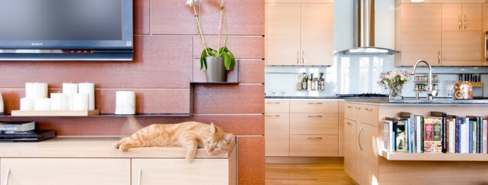 Кроме обыденного укрепления телевизора на стене на предлагающемся в комплекте подвижном кронштейне есть еще масса способов. Например, телевизор, закрепленный над бытовыми приборами создаст необычную обстановку кухни будущего, где все функции выполняются компьютерами. Монитор в одном ряду с посудомоечной машиной и микроволновой печью способен создать необходимый антураж.