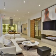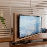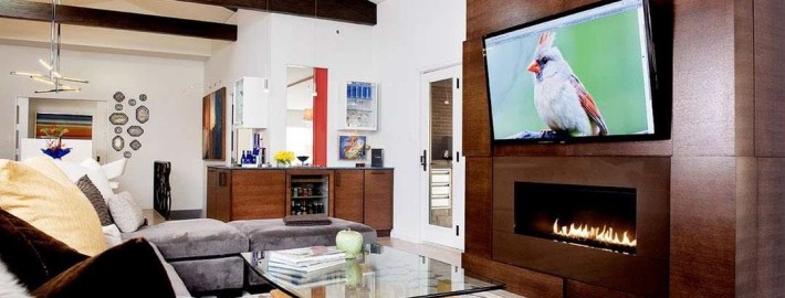 В соответствии со всеми этими правилами, хочется, чтобы телевизор красиво вписывался в окружающее пространство. В наше время этот волшебный ящик, уже давно не собирает около себя всю семью. Теперь в каждой комнате и у каждого члена семьи может быть свой телевизор. Его можно разместить даже в ванной и прихожей. Да и ящиком его теперь сложно назвать. Современные разработки сделали минимальной толщину телевизора, и наши домашние любимцы – кошки совсем этому не рады. Кошки любят лежать на чем-то теплом, и старые телевизоры были идеальным и любимым для них местом. Однако речь не о кошках. Узкие размеры расширяют возможности и удобство расположения телевизора в любой комнате. И позволяют полностью или частично скрыть его, что выгодно для стилистики помещения, так как главный акцент переносится с телевизора на иные предметы интерьера. И сам интерьер становиться выразительней.