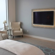 Для того чтобы телевизор лучше вписывался стиль помещения, его можно обрамить красивым багетом в том же стиле что и рамы картин в комнате.