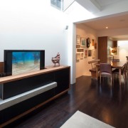 Английский, Скандинавский стили. Казалось бы строгие черты этих стилей хорошо сочетаются с минимализмом конструкции телевизора. Но оба эти стиля очень требовательны к мелочам, поэтому телевизор лучше спрятать за дверцами шкафов.