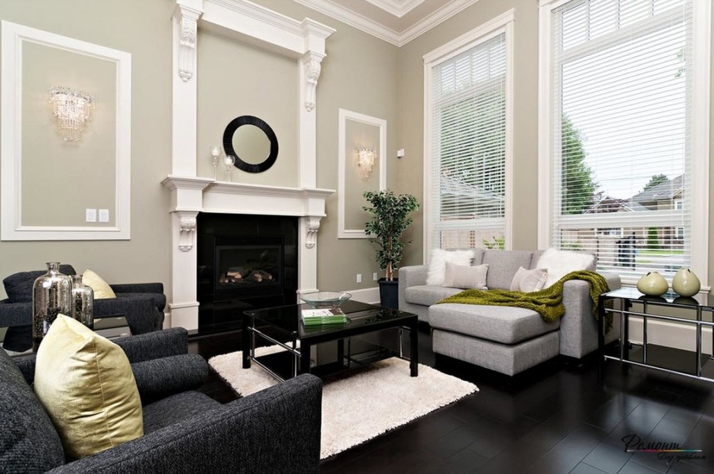 Гостиная в любой квартире должна быть роскошной. И именно шик и роскошь интерьеру придаст темное напольное покрытие. Черный цвет пола идеально впишется в классический стиль, а также рококко, антик и барокко. Он идеально будет гармонировать как с лепниной, так и со строгими углами и линиями.