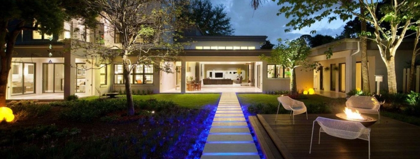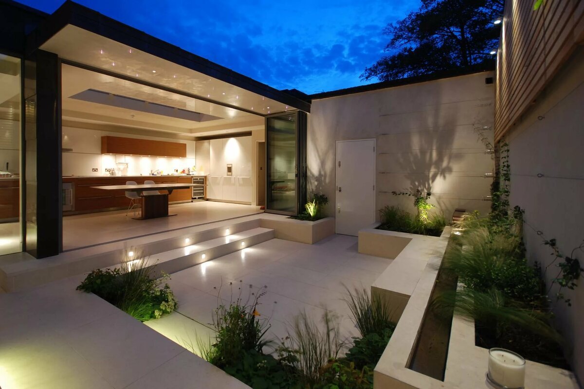 Есть еще одна интересная и эффектная тенденция в освещении дворов. Это умное и интеллектуальное освещение. В чем его смысл? Оно означает более высокий уровень безопасности и управления с помощью достаточно простых систем управления – дистанционных пультов и даже определенных команд голоса. Можно устроить интеллектуальное освещение ландшафтных зон с помощью систем ГуглАссистент и Алекса. Такие системы способны полностью контролировать освещение всего участка, или его отдельных зон.