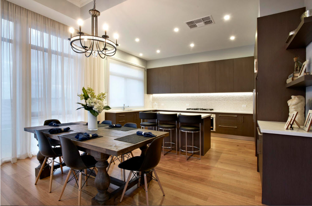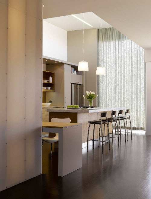 Полупрозрачные ткани для кухонных пространств, совмещенных с гостиными и столовыми