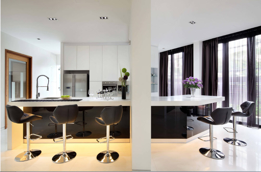 Любой хозяин желает видеть свое кухонное пространство не только практичным, удобным, оснащенным по последнему слову техники и отделанным с помощью самых прогрессивных материалов, но и уютным, приятным внешне. Для завершения образа кухонного помещения нередко используется текстиль. Несмотря на тотальное стремление современного стиля оформления интерьеров к минимализму, многие домовладельцы не перестанут декорировать оконные проемы и использовать тончайшие ткани для зонирования кухонного сегмента в общем помещении гостиной. Именно драпировке зон в кухонном пространстве будет посвящена наша подборка дизайн-проектов.
