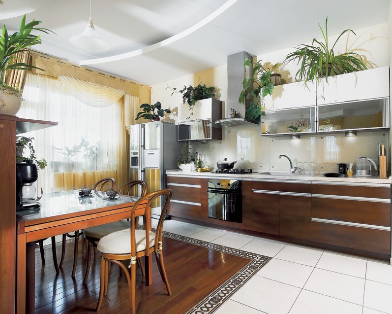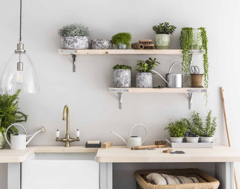 - Использование растений в подвесных кашпо: это самый простой и доступный способ. Выберите растения, которые хорошо переносят условия кухни, и разместите их в подвесных кашпо вдоль стены.