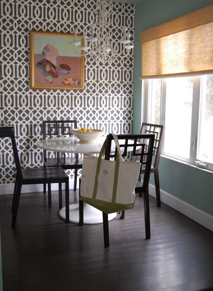 Изначально необходимо выбрать оптимальный рисунок, следует отметить, что узор должен не только нравиться хозяину жилья, но и соответствовать стилю квартиры или отдельно взятой комнаты. Например, геометрические формы и рисунки будут нелепыми в стиле рококо, однако смогут идеально вписаться в спальню или гостиную, выполненную в стиле хай-тек.