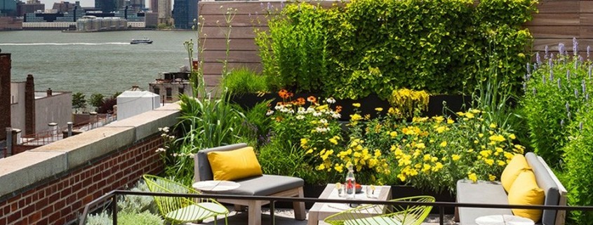 Поднявшись по деревянным ступеням еще на один уровень, мы оказываемся на крыше здания, где домовладельцы и дизайнеры уже не сдерживали себя в процессе оформления настоящего уголка живой природы посреди каменных джунглей.