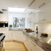 Горизонтальные линии кухонного гарнитура могут быть двух видов: единая или разно уровневая. Единая позволяет без труда передвигать посуду, а так же использовать всю рабочую плоскость. Разно уровневая горизонталь имеет рабочий стол, расположенный ниже плиты на 2-8 см., а мойку завышенную на 10 см.