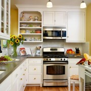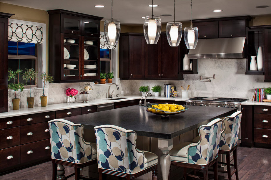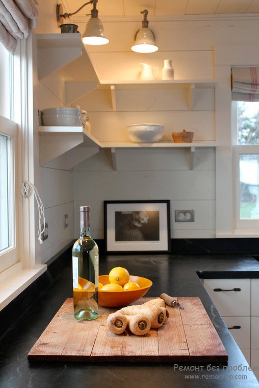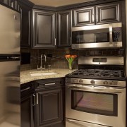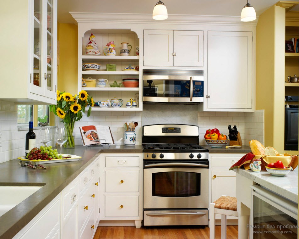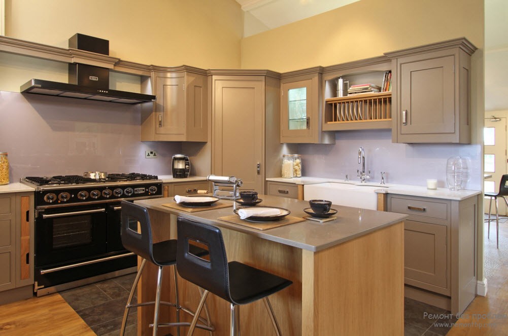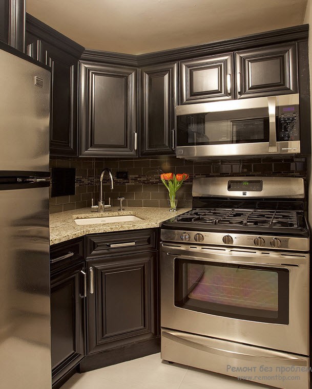 Простые, демократичные стили интерьера, которые ставят задачу создать уют, домашнюю обстановку так же можно адаптировать под современность. Поскольку ни в одном из демократичных стилей нет особых требований к цвету, используйте более темные гаммы, сочетаемые с бытовой техникой.