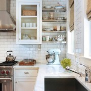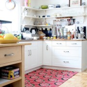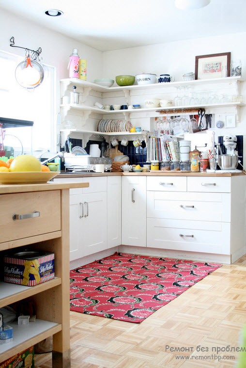 Представитель строгости и современности – шведский (норвежский) стиль, предлагает избавиться от культа формы и насыщенности цвета. Основными требованиями к угловой кухне в шведском стиле есть четкость, геометричность и преимущественно белый цвет. Деревянные мебельные гарнитуры дополняются обязательной фурнитурой и бытовой техникой. Без остекления, без узоров и без цветовых контрастов, шведские кухонные гарнитуры выражают себя в мелком, но ярком декорировании: фрукты, кухонная утварь, пестрая мозаика на стене у рабочей плоскости наполняют композицию смыслом.