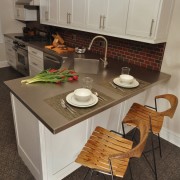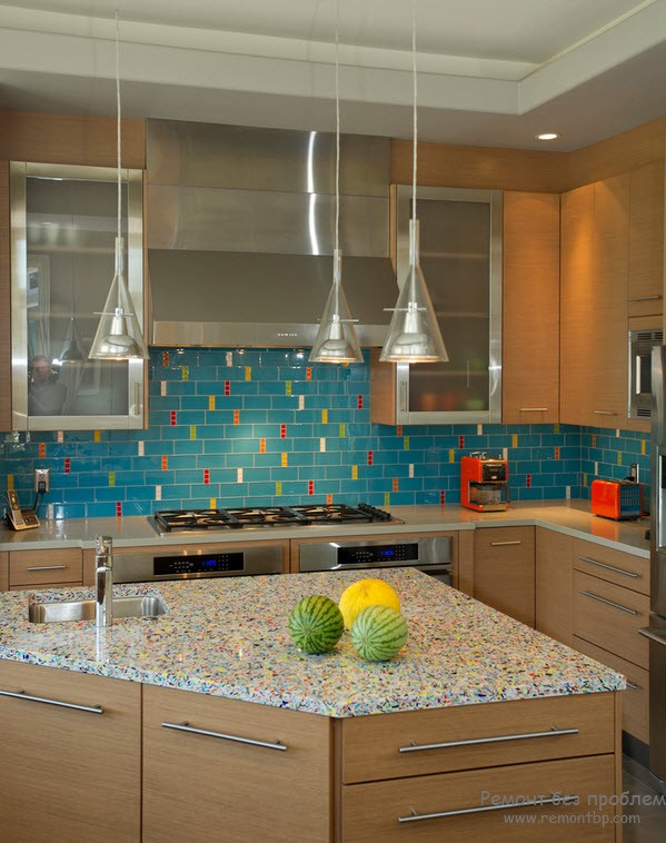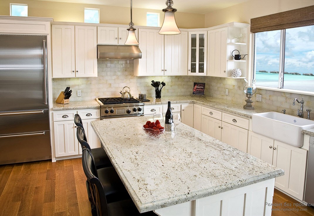 Сталь – прочный материал, но хромированные металлические поверхности могут использоваться только в рамках конкретных стилей интерьера. Натуральный камень – лучший из материалов, поскольку является высокодекоративным и прочным, единственный недостаток – стоимость. Как альтернатива используется искусственный камень, который имеет все декоративные свойства натурального и немного уступает в прочности. Ударопрочное стекло редко используется в виде материала для столешниц, поскольку сложная обработка материала, для придания ему прочности, сказывается на итоговой стоимости, к тому же стеклянные поверхности могут использоваться только в некоторых современных направлениях дизайна. ДСП, выполняющее роль основы столешницы и пластик, отличается достаточным уровнем прочности и при этом предлагает очень широкий ассортимент цвета.