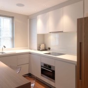 Лаконичность стилистики ампира и романтика европейских стилей в совокупности представляют интерьерные особенности бидермейера. Акцент на практичность и добротность подчеркивается с помощью дорогих древесных пород, и простой формы угловой кухни. Оформление без архитектурного декора и удобная, функциональная фурнитура дополняют основную идею стиля.