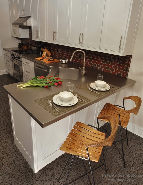 К выбору материала столешницы стоит подходить более обстоятельно. Важно в равных долях учесть и характеристики прочности, и декоративные особенности материала. Для изготовления используются: сталь, искусственный камень, натуральный камень, стекло, ДСП и пластик.