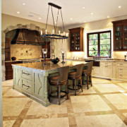 Романский стиль приобретает свой характер благодаря темному дереву и натуральному камню. Грубые и тяжелые элементы мебели декорируются мягкими резными линиями и крупной фурнитурой. Навесные шкафы могут быть как закрытого типа, так и с остеклением. Особую эстетичность придают мелкие детали: посуда и кухонные принадлежности романского стиля.