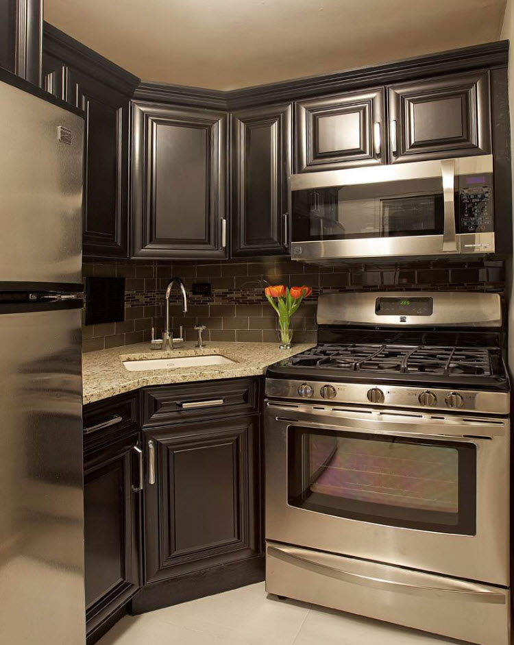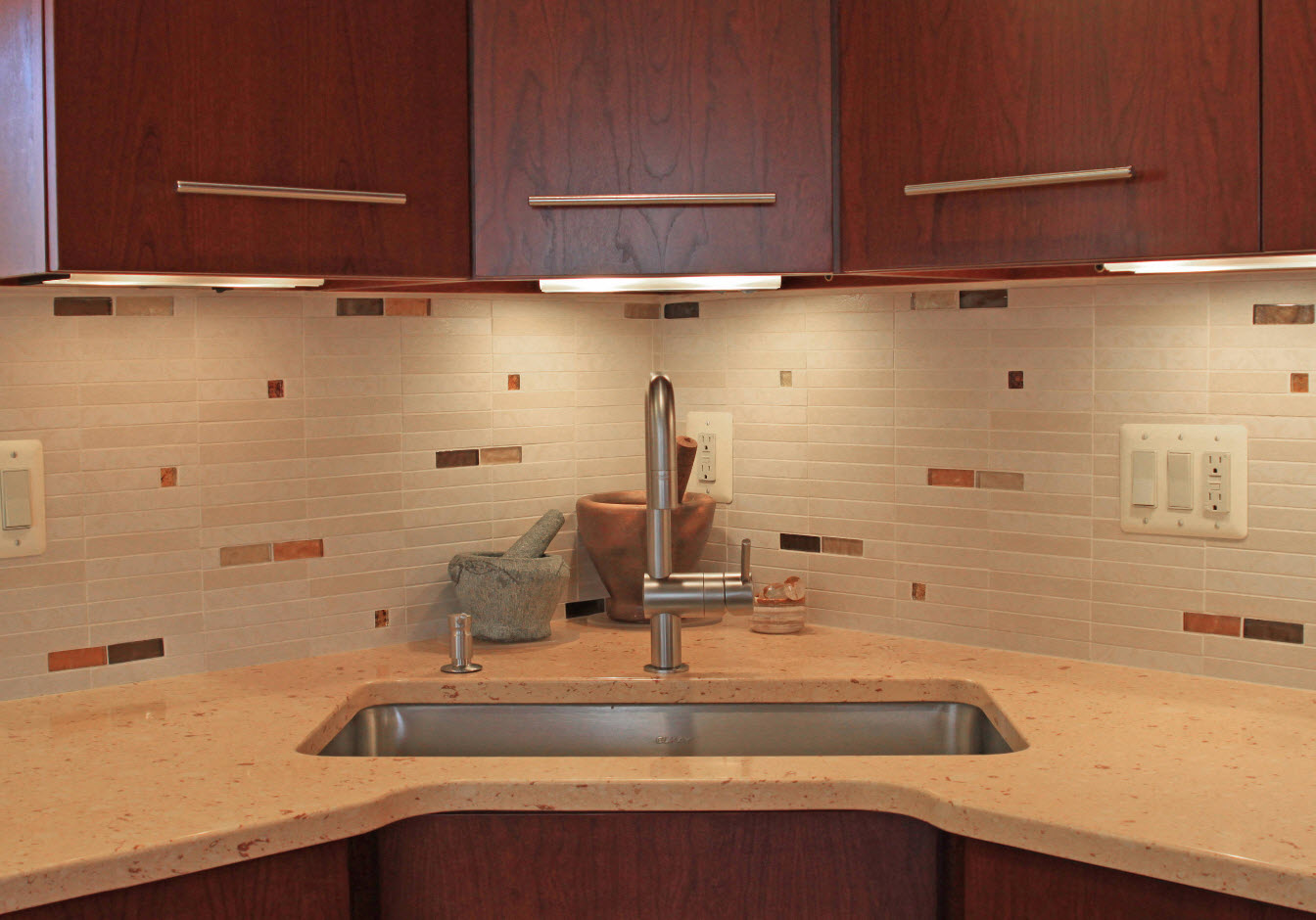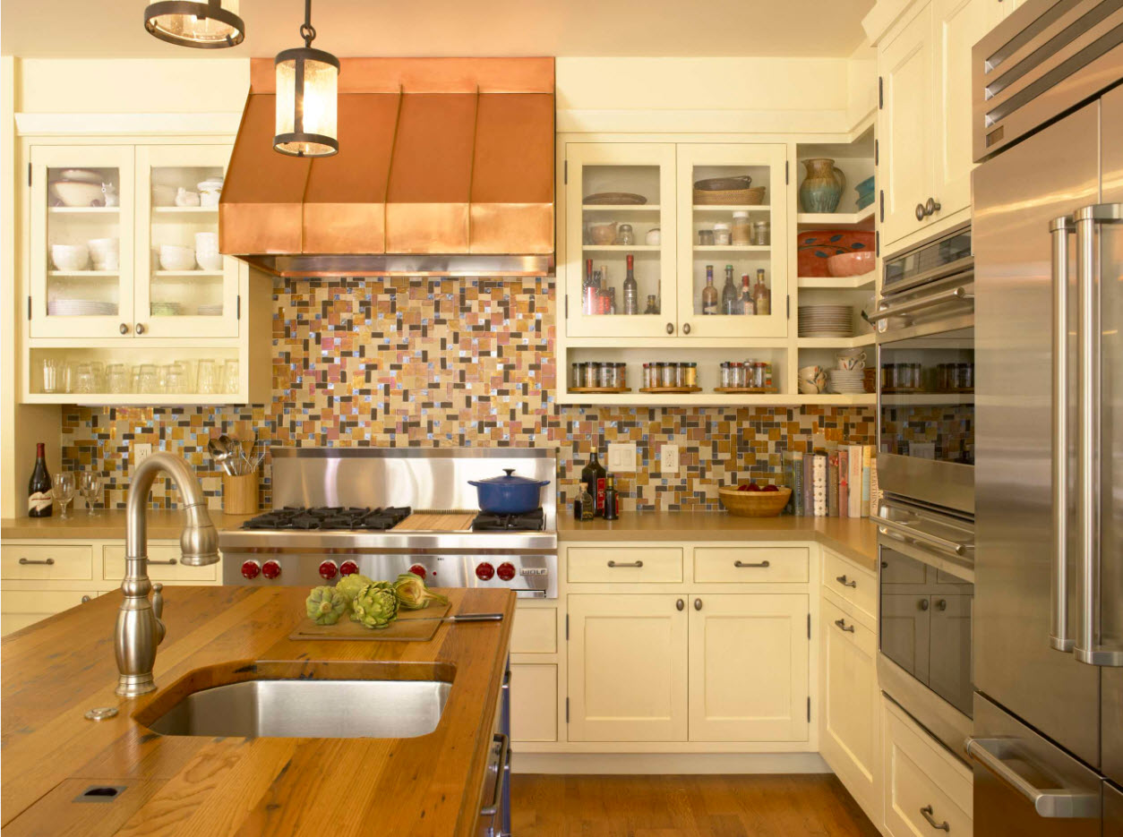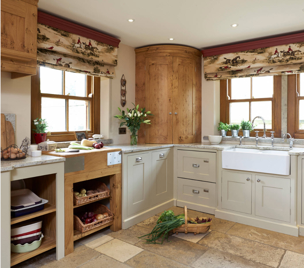Но и в кухонном пространстве без окон в углу помещения можно эффективно расположить раковину. Преимущество угловой зоны в том, что в ней достаточно места даже для двойной мойки. А любое усовершенствование ключевых функциональных сегментов кухонной обстановки приводит не только к экономии времени и сил, но и получение удовольствия от рутинных рабочих процессов.