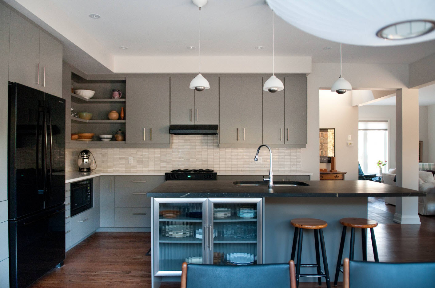Во все времена владельцы квартир и домов, планирующие ремонт в своих кухонных пространствах условно делились на тех, кто, несмотря на все нововведения, предпочитает нестареющую классику и тех, кому по нраву современные дизайнерские идеи. Современная стилистика стремится к минимализму с сохранением принципов личностного комфорта. Мебель в современном стиле выглядит просто и лаконично, но при этом невероятно функциональна, практична и проста в эксплуатации. Фасады в этом случае необязательно должны быть абсолютно гладкими, лишенными декора и видимой фурнитуры. Современные гарнитуры могут представлять собой комбинирование гладких фасадов в верхней части ансамбля, например, и оснащенные ручками дверцы шкафов в нижней.