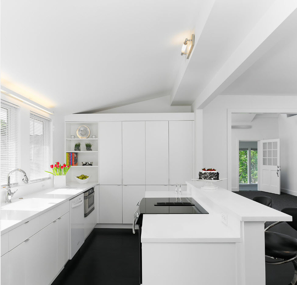 Ремонт кухонного пространства – это всегда камень преткновения для владельцев, как малогабаритных квартир, так и просторных частных домов. Слишком много элементов интерьера необходимо учесть, немало дилемм решить и распланировать весь ход ремонта еще на стадии составления эскиза образа помещения. А ведь в большинстве случаев все эти решения необходимо принимать для комнаты весьма скромных размеров, часто с непростой геометрией и «оригинальным» расположением систем коммуникаций. В любом случае, одним из важнейших решений становится выбор планировки кухонного гарнитура. Ведь от того, каким образом расположены системы хранения, рабочие поверхности и встроенная бытовая техника во многом зависит не только обстановка кухонного помещения, но его функциональность, удобство эксплуатации всех составляющий и внешний вид кухни. Предлагаем вашему вниманию подборку дизайн-проектов кухонных помещений, в которых использовалась угловая компоновка мебельного ансамбля, как самая универсальная и практичная.