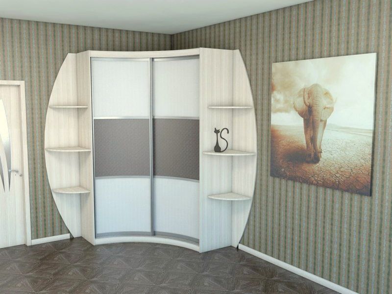 Существуют варианты угловых шкафов более скромных размеров. В этом случае шкаф выполняет роль исключительно хранения одежды и аксессуаров, и конечно будет дополнен обязательными для прихожей предметами мебели и интерьера. Угловые шкафы для прихожей бывают четырех видов: полукруглый радиусный, классический прямоугольный, строгий треугольный, необычный трапециевидный.