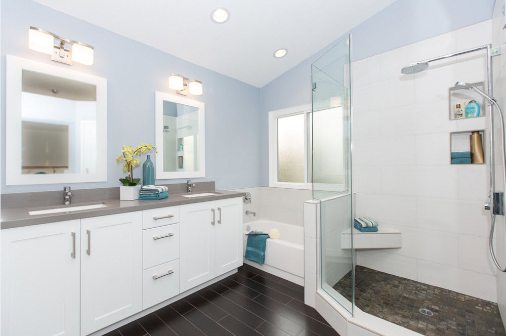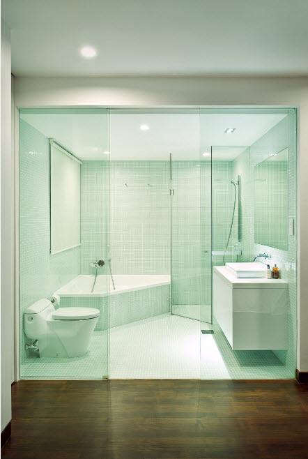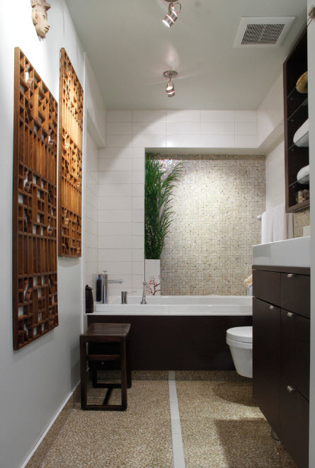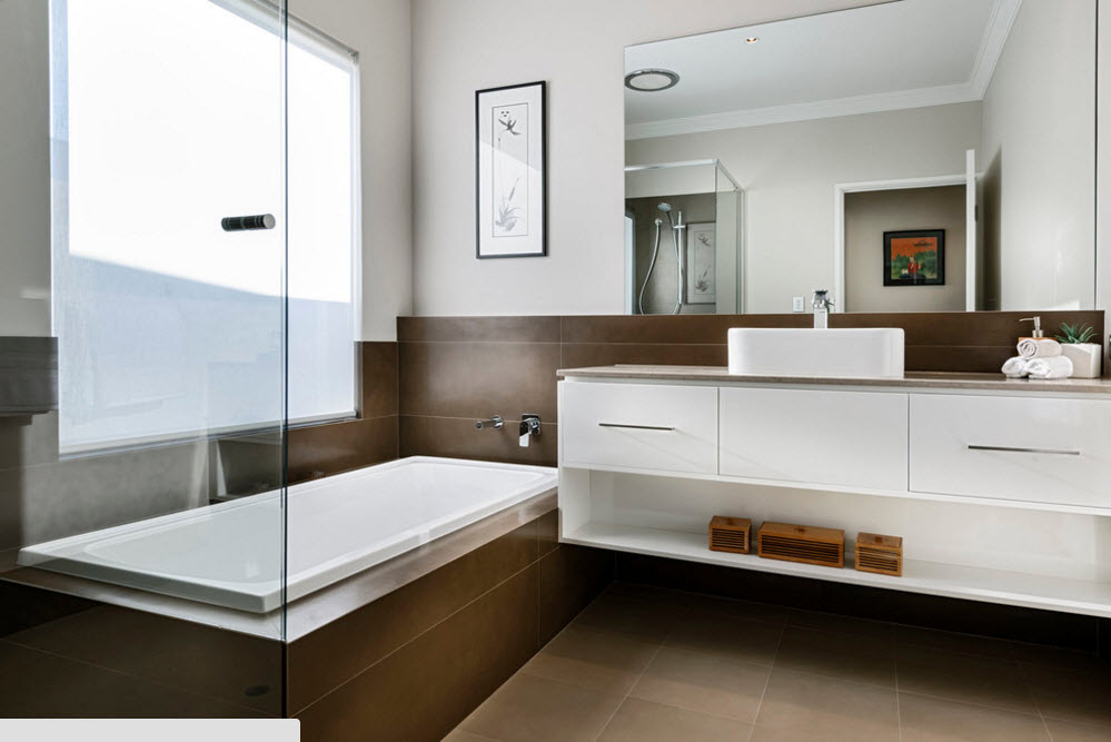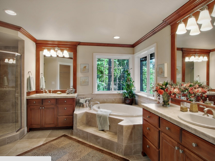 Безусловно, форма угловой ванны должна быть согласована с остальными элементами интерьера. Сантехника и системы хранения с плавными линиями станут идеальным дополнением ванны в форме сектора, овала или круга, резервуара с закругленными углами. Для прямоугольной или квадратной ванны подойдут сантехнические устройства и системы хранения с такими же четкими линиями и формами.