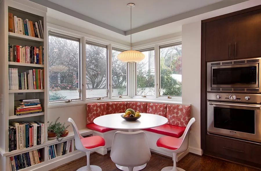 Стоит отметить, что на обычном угловом диванчике уместиться семья в 3-4 человека. Если же выбрать нестандартный размер, то это количество может быть больше или меньше. При этом сидеть на мягкой поверхности сидений, опираясь на аналогичную спинку намного удобнее, чем на табуретке или даже стуле. При этом в качестве дополнительных мест в комплект к угловым диванчикам нередко предлагаются пуфы или табуреты.