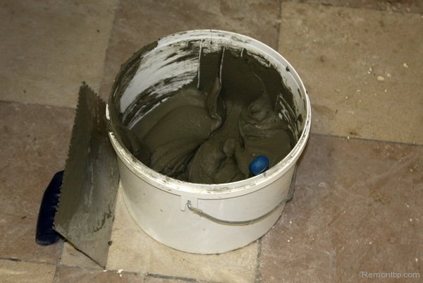 Укладка керамической плитки делается на клей. Не стоит экспериментировать с цементным раствором. Кроме того, при выборе клея в магазине обратите внимание на тип клея. Если хотите облицовывать стены в ванной комнате или в туалете, то выбирайте влагостойкий клей. При разведении клея (если это сухая смесь), обязательно соблюдайте пропорции на упаковке.