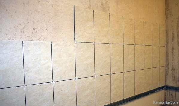 Всегда пользуйтесь нормирующими пластмассовыми крестиками толщиной 1.5-2.0 миллиметра. Иначе швы будут неровными и плитка при укладке будет сползать. И, в конечном итоге, Вы загубите всю облицовку.