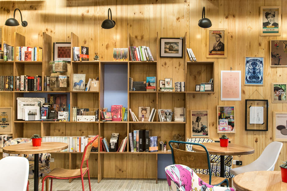 Помимо различных систем хранения, прилавков и открытых полок для книг, стены оригинального кафе украшает разномастный декор – от фото известных личностей до винтажных постеров прошлого столетия. Если посетители успели выпить кофе или почитать книгу, то вернуться в следующий раз хотя бы для того, чтобы рассмотреть внимательнее обстановку нетривиального магазина.