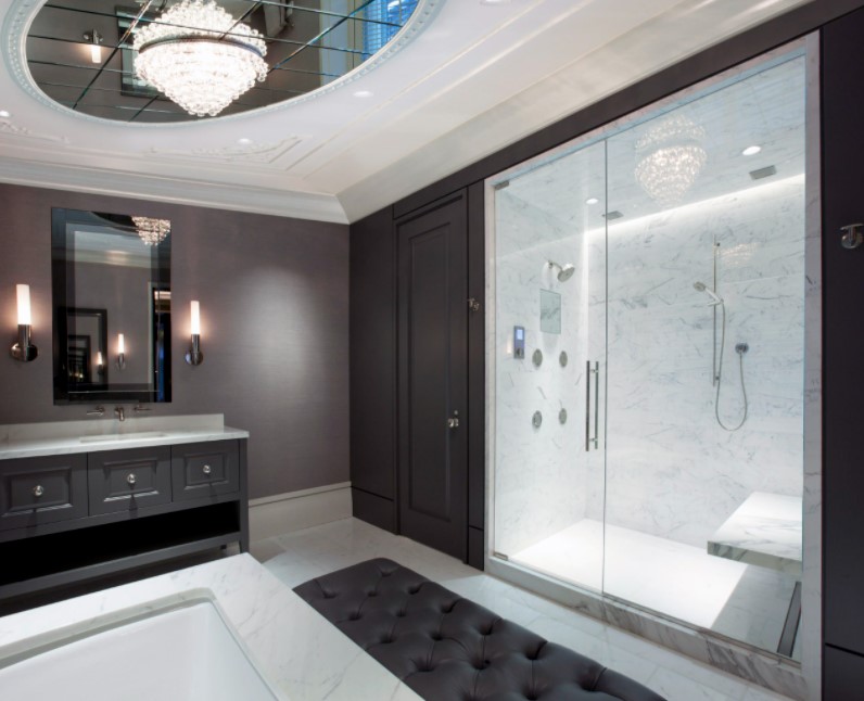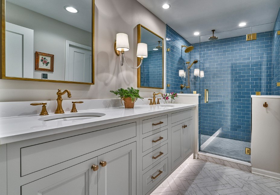 Есть еще одна модная тенденция, которая будет интересна для дизайнов интерьеров ванной 2024 года. Это эклектичный стиль – сочетание нескольких разных стилевых мотивов и узоров. Оказывается, можно соединить вместе, казалось бы, совершенно несочетаемые вещи и стили. А все дело в том, что нужно подобрать украшения, которые будут ладно сочетаться с каждым из выбранных стилей. А еще нужно выбрать нужный цветовой тон для каждого из используемых узоров.