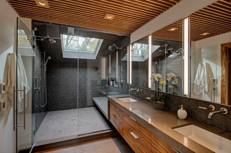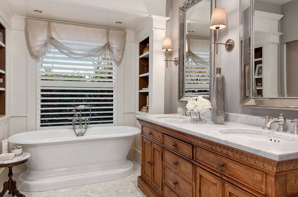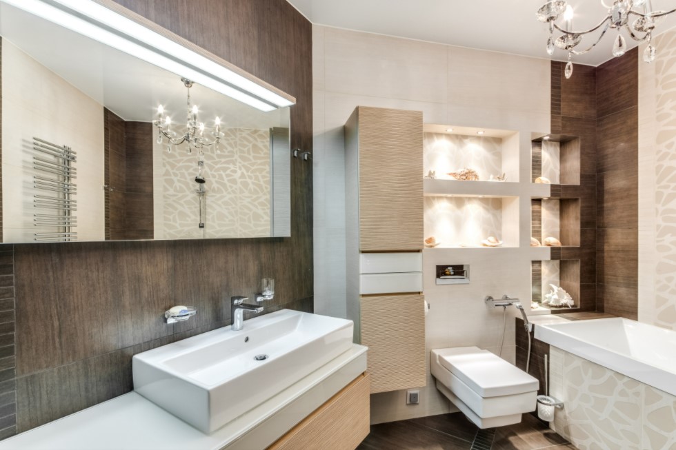 Очень актуально будет сочетание деревянных материалов и мрамора. В ванной комнате хороша будет керамическая плитка, которая сегодня в строительных магазинах продается в абсолютно любом цвете и дизайне.