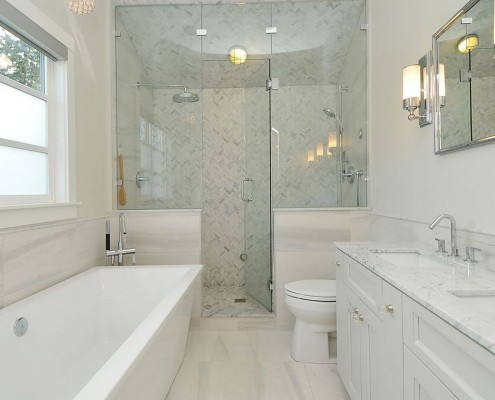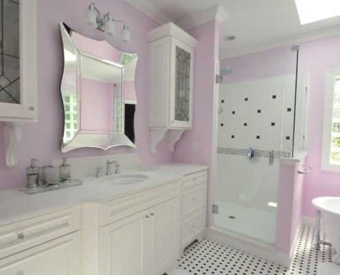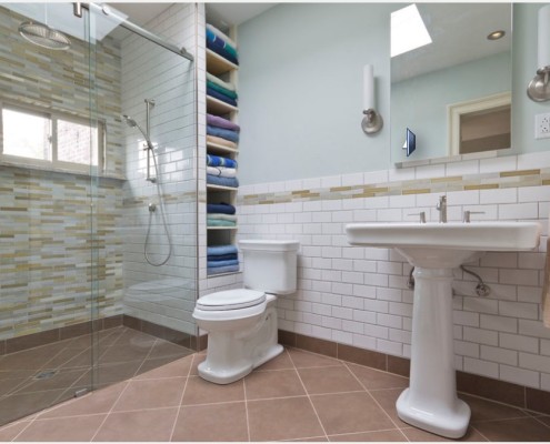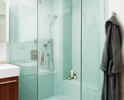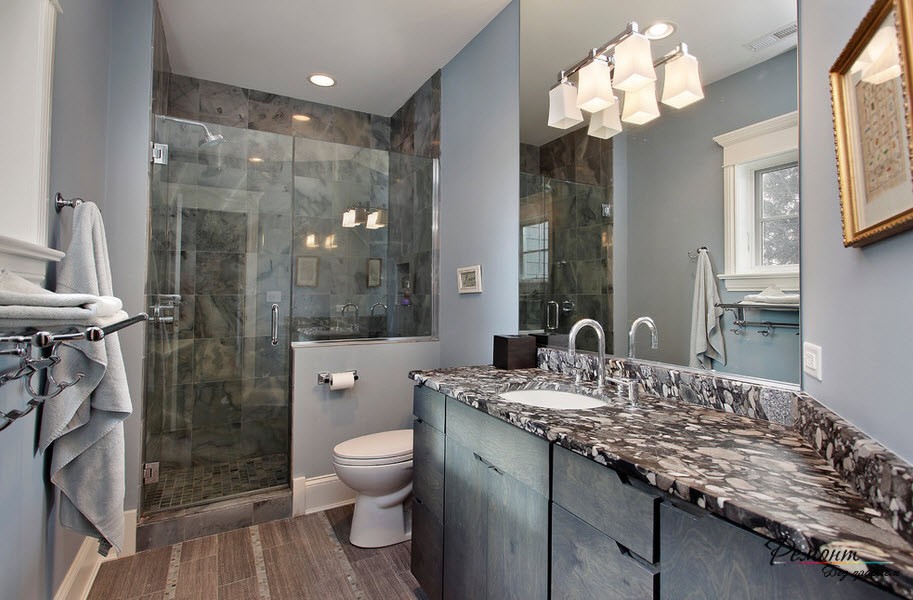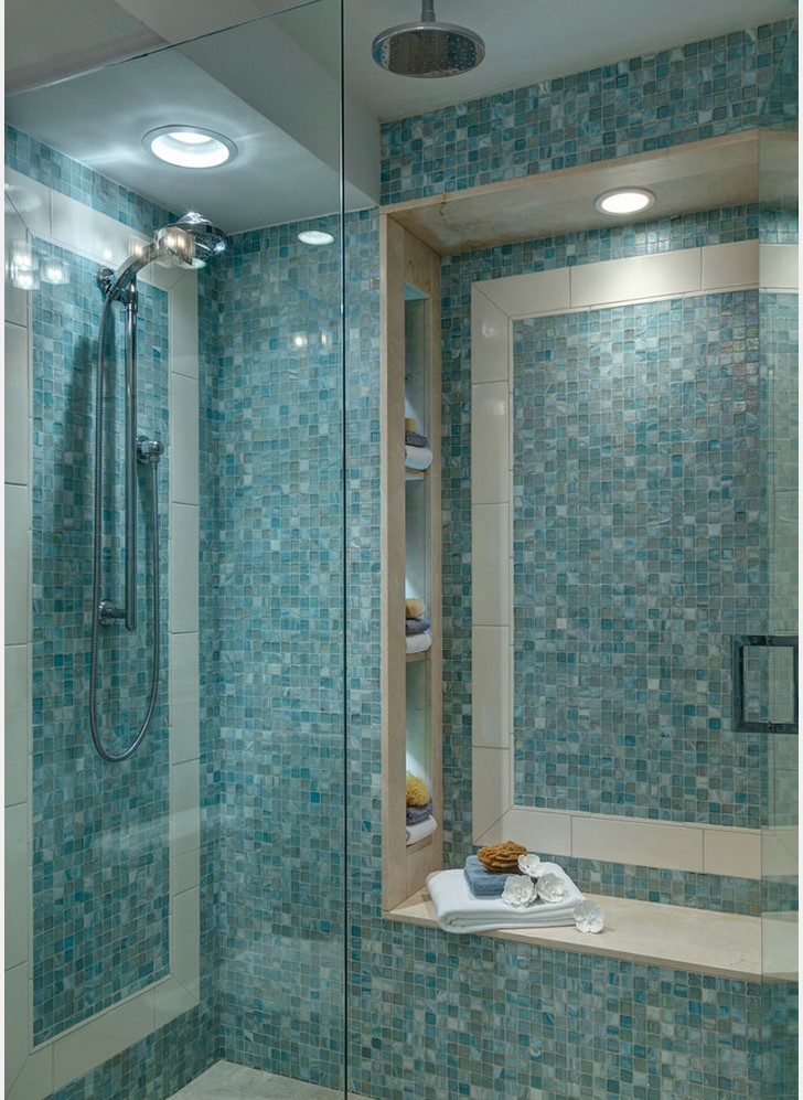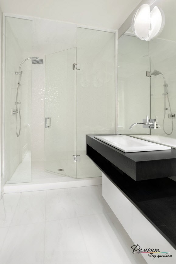 Количество цветов, используемых при отделке ванной комнаты с душевой кабинкой, зависит от ее величины.