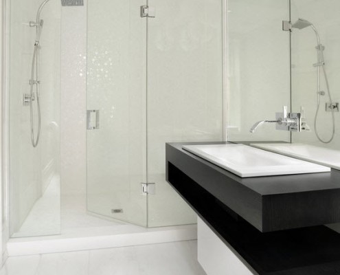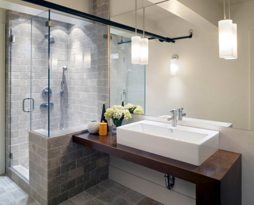 Пристенное расположение. Этот вариант хорош в случае демонтажа ванны (за ее ненадобностью), так как позволяет использовать систему водоснабжения демонтированной ванны. Это в значительной степени сократит и трудовые, и финансовые затраты.