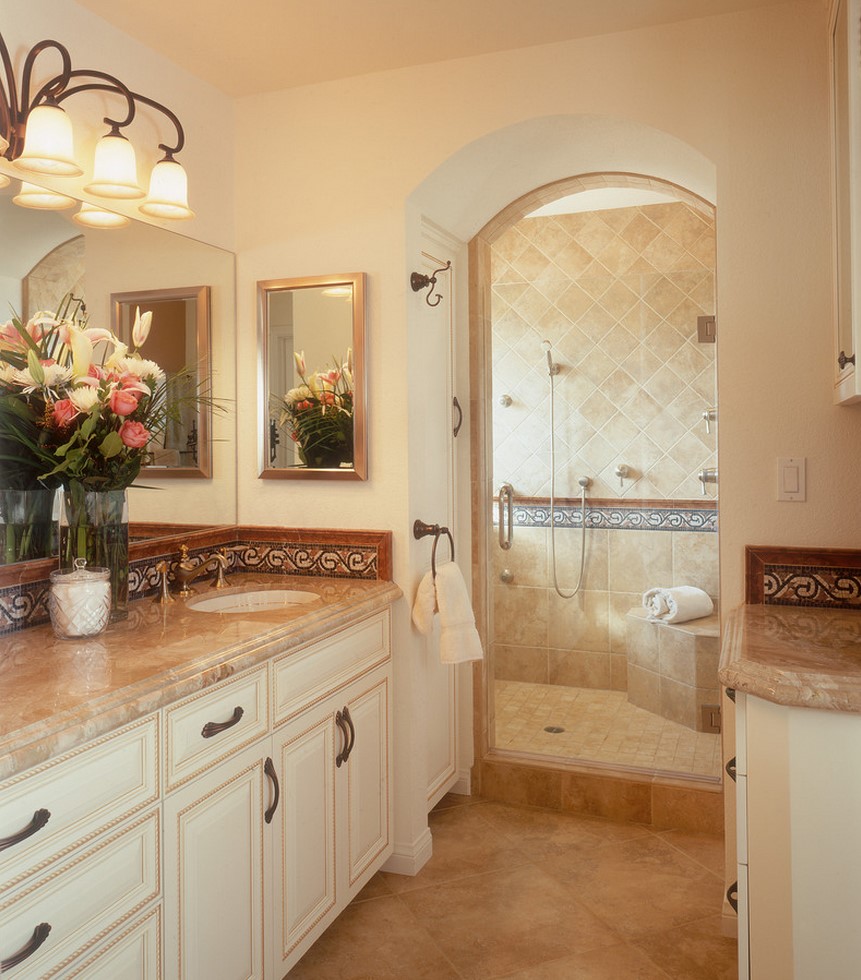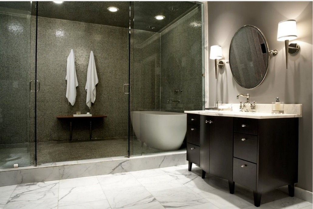 Особый вопрос – зеркало в ванной комнате. Зеркало в ванной комнате, с душевой кабинкой или нет, большой или маленькой, должно быть обязательно. Сегодня оно несет в себе не только практическое значение, но и служит красивым элементом дизайна ванной комнаты.