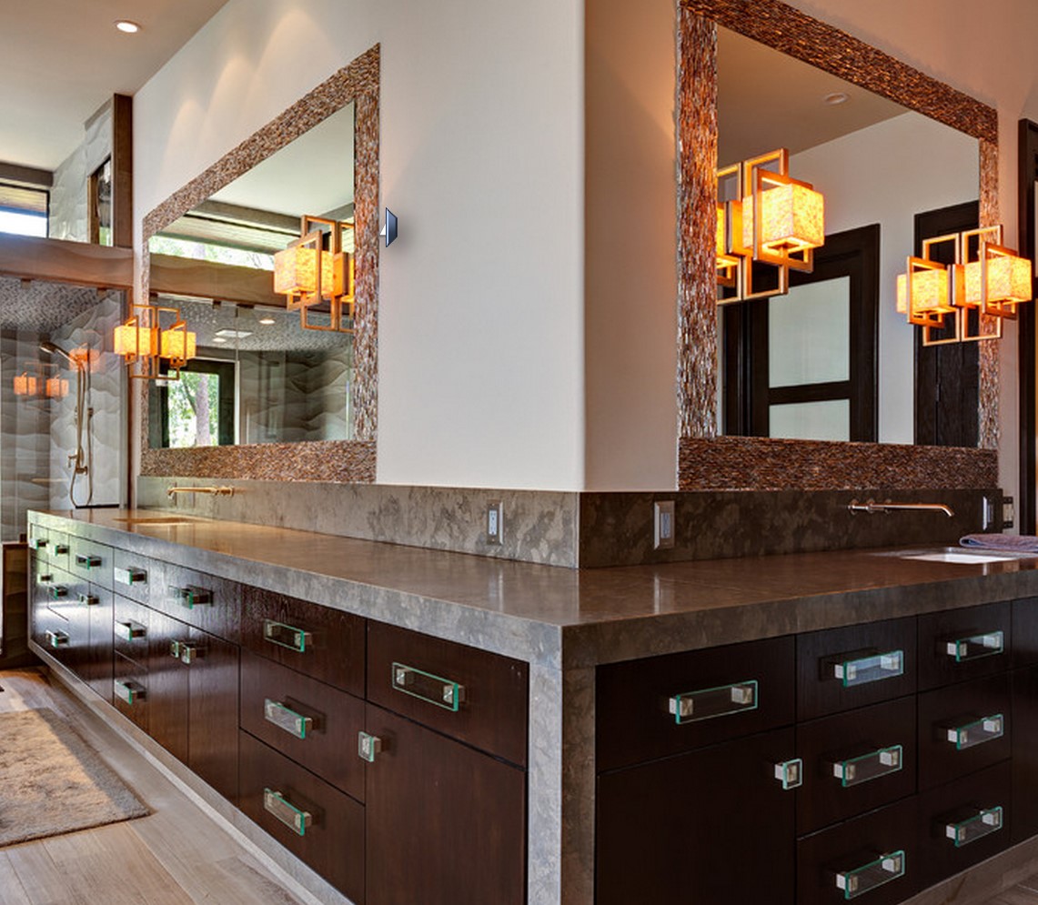 В последние годы получили распространение зеркала с встроенной подсветкой. В этом случае вы избавляетесь от необходимости установки нескольких светильников, то есть рациональность варианта налицо.